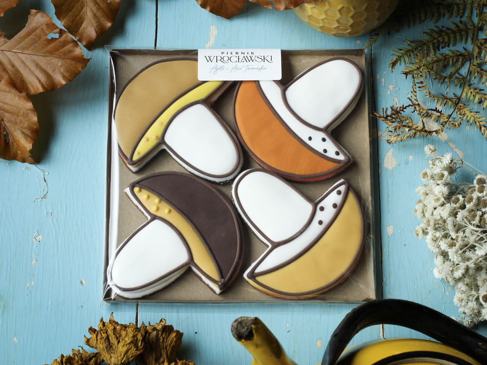 Udane Grzybobranie – zestaw ręcznie zdobionych pierników w kształcie leśnych grzybów, które przeniosą Cię prosto do jesiennego lasu. Każdy piernikowy grzybek został starannie wykonany i ozdobiony w naturalnych, ciepłych odcieniach brązu, beżu i złota, przypominających świeżo zebrane borowiki. Te słodkie, jadalne dzieła sztuki są wytwarzamy z naturalnych składników, bez sztucznych dodatków, według tradycyjnej receptury.